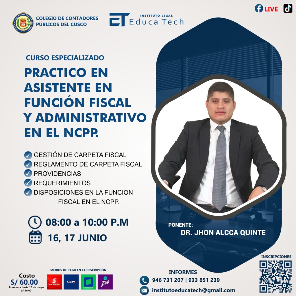 CURSO ESPECIALIZADO PRACTICO EN ASISTENTE EN FUNCIÓN FISCAL Y ADMINISTRATIVO EN EL NCPP.